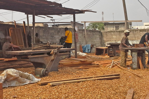 Eine weitere Gruppe wird ein Schattendach für den Innenhof des Espace bauen. Zunächst sind aber noch die Baumaterialien vor Ort zu beschaffen. Bei diesen Einkäufen lernen wir auch ein wenig die Märkte und Handwerksbetriebe kennen. Im Sägewerk beispielsweise stehen die Maschinen auf einem Berg von Sägespänen unter freiem Himmel und die Handwerker arbeiten ohne den uns bekannten Arbeitsschutz mit hohem Risiko.