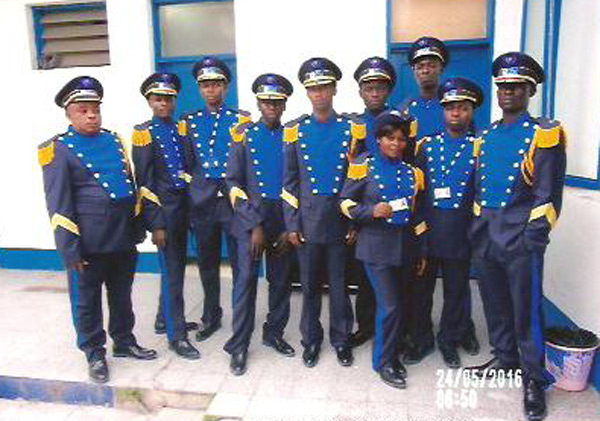 9 Jugendliche des Espace Masolo und Papa Nkasu, Leiter der Fanfare Masolo, spielen seit neuestem auch in der Fanfare der DGM (Direction Génerale de Migration). Das ist die staatliche Migrations- und Einwanderungsbehörde in der DR Kongo.